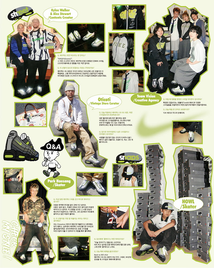 The venue was filled with an energetic atmosphere, bringing together fashion and music archives tied to the Air Max 95, along with drinks designed to be shared and enjoyed collectively. Beyond the on-site experience, we also organized content that previously captured how this icon would be received by Seoul’s community at the very front end of the release.